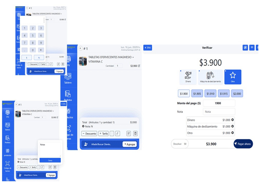 Agiliza tus ventas con un proceso de carrito rápido y flexible. Tu agente o cajero puede guardar pedidos, aplicar descuentos o comisiones, añadir notas personalizadas, gestionar clientes y aceptar pagos fraccionados de forma intuitiva, todo desde un mismo panel.